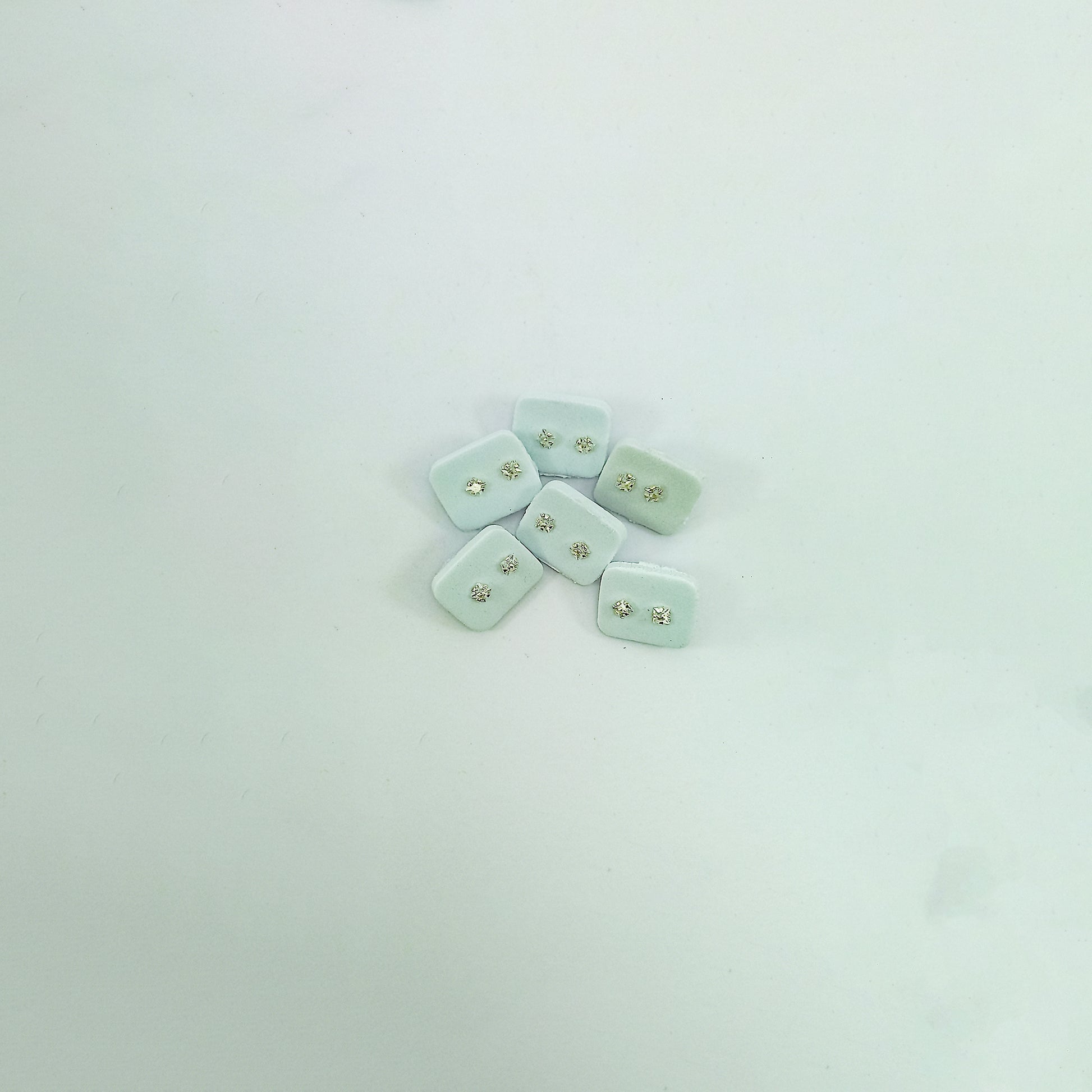 Topos de plata con piedra blanca, elegantes y brillantes, perfectos para cualquier ocasión.